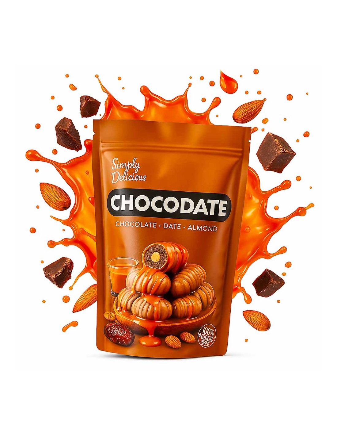 CHOCOLATE DATTE AMANDE ENROBE BLANC CARAME CHOCODATE 90G